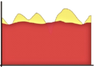 La Fig. B illustra la linea di verniciatura a polvere con la tecnologia HD™ in rosso, sovrapposta alla verniciatura a polvere tradizionale della Fig A.