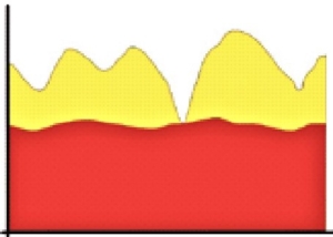 La fig. A mostra il grafico che rappresenta una linea di verniciatura a polvere priva della tecnologia HD™.