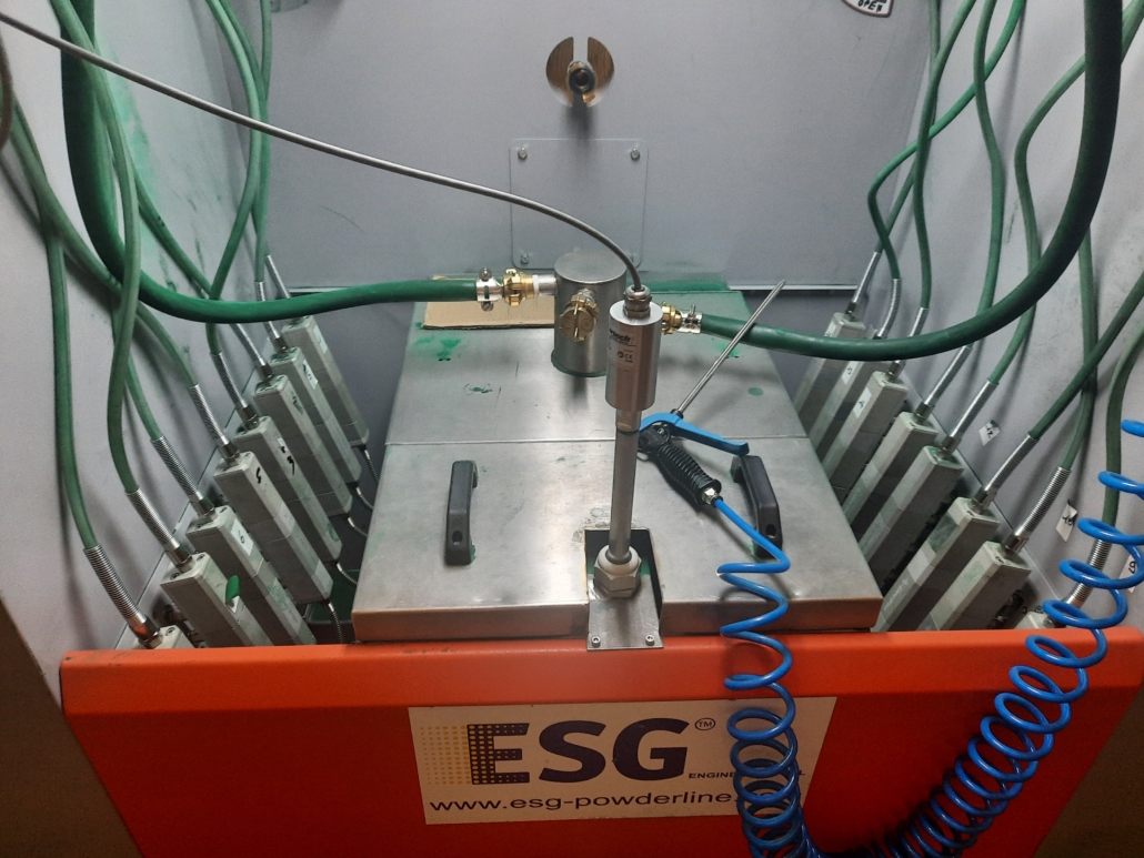 Il flusso di dati provenienti dal PLC di comando generale permette, oltra alla perfetta regolazione degli spessori, di personalizzare i dati tecnici ( percentuale e pressione della polvere erogata, dell’aria compressa etc etc) delle pistole.